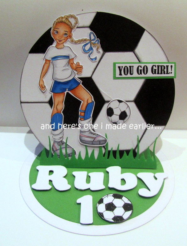 This is for my granddaughter who will reach the wonderful age of 10 next month. Last year her card was pink with a fairy and a large donut...how kids change in a year! now her passion is football, her prized possessions her football strip, boots and shin pads!!! Still it's good healthy exercise!