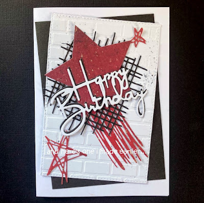 I made this card for my teenage nephew, it was so quick and easy to make as there's no image or colouring...or even any stamping,. I used a brick wall EF on the white panel and flicked a little ink on it, apart from that it's all die cuts.